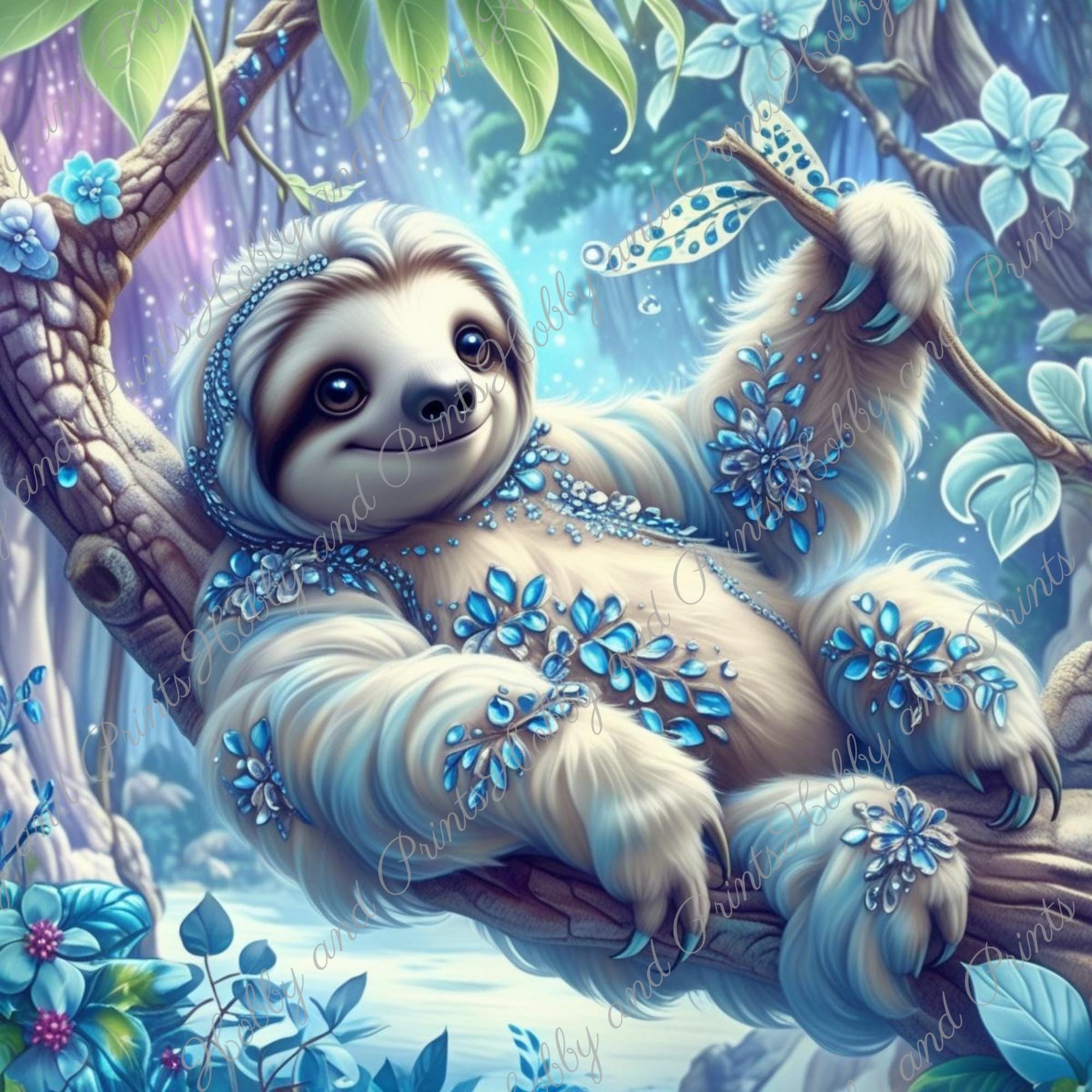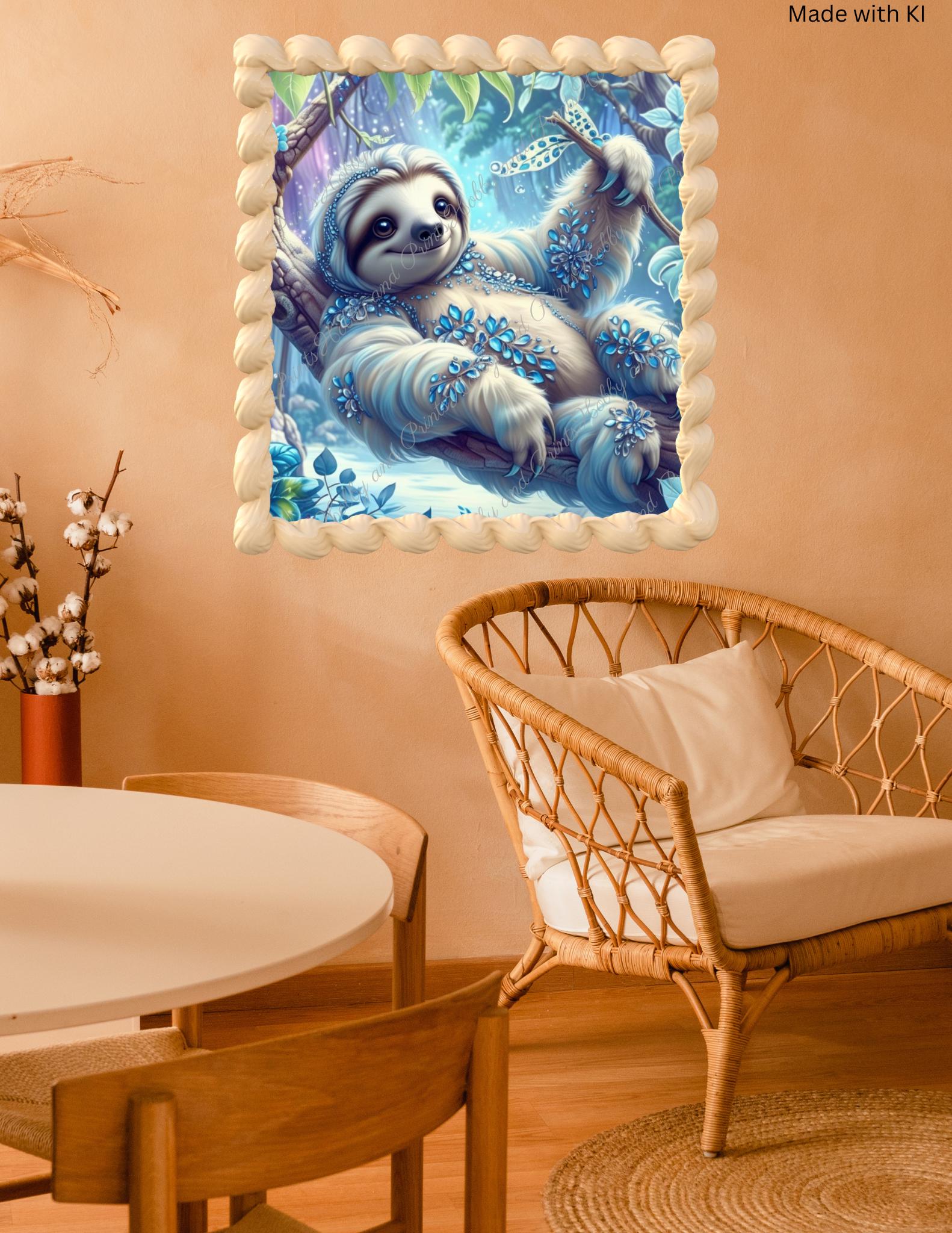 This enchanting diamond painting depicts a sweet, wintry sloth with glittering jewelry patterns and crystal-blue details. Set amidst a shimmering snow-covered forest, the motif looks like something out of a fairy tale β ideal for fans of fantasy, sloth , magic art, and children's room decor.