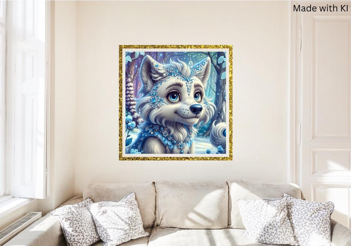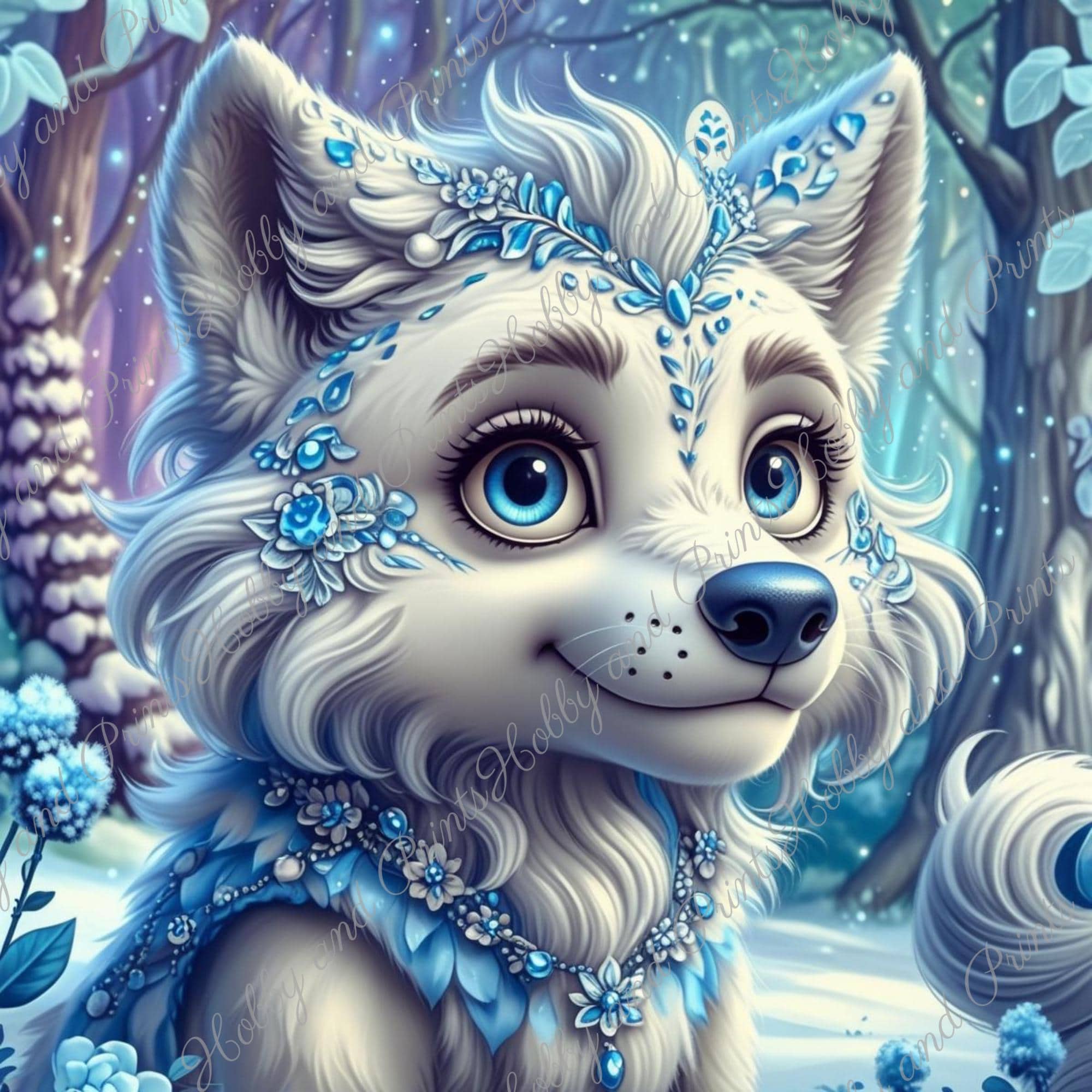 This enchanting diamond painting depicts a sweet, wintry Wolf with glittering jewelry patterns and crystal-blue details. Set amidst a shimmering snow-covered forest, the motif looks like something out of a fairy tale β ideal for fans of fantasy, Wolfs , magic art, and children's room decor.