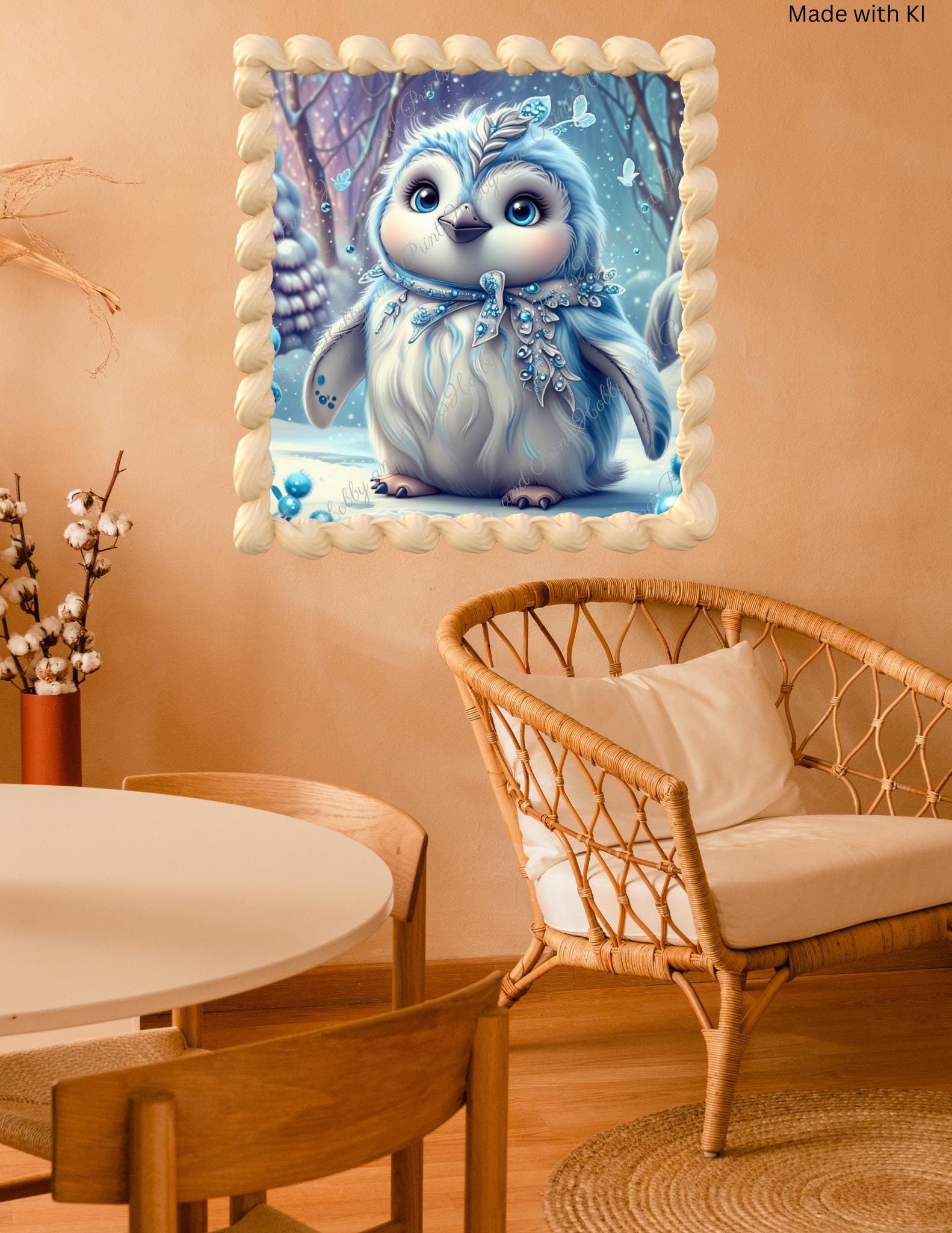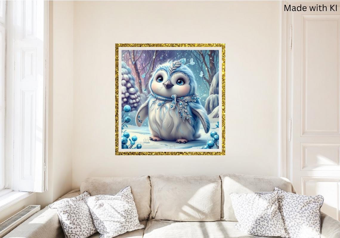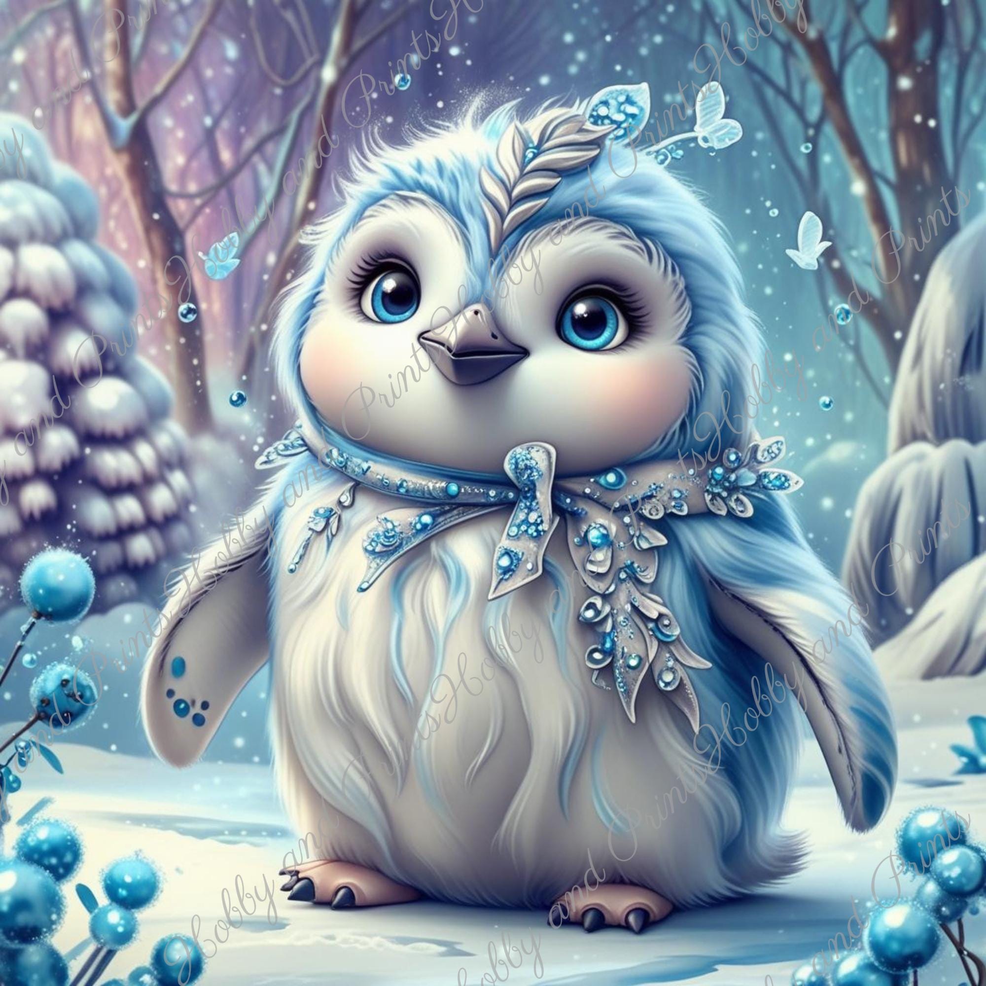 This enchanting diamond painting depicts a sweet, wintry penguin with glittering jewelry patterns and crystal-blue details. Set amidst a shimmering snow-covered forest, the motif looks like something out of a fairy tale β ideal for fans of fantasy, penguins , magic art, and children's room decor.