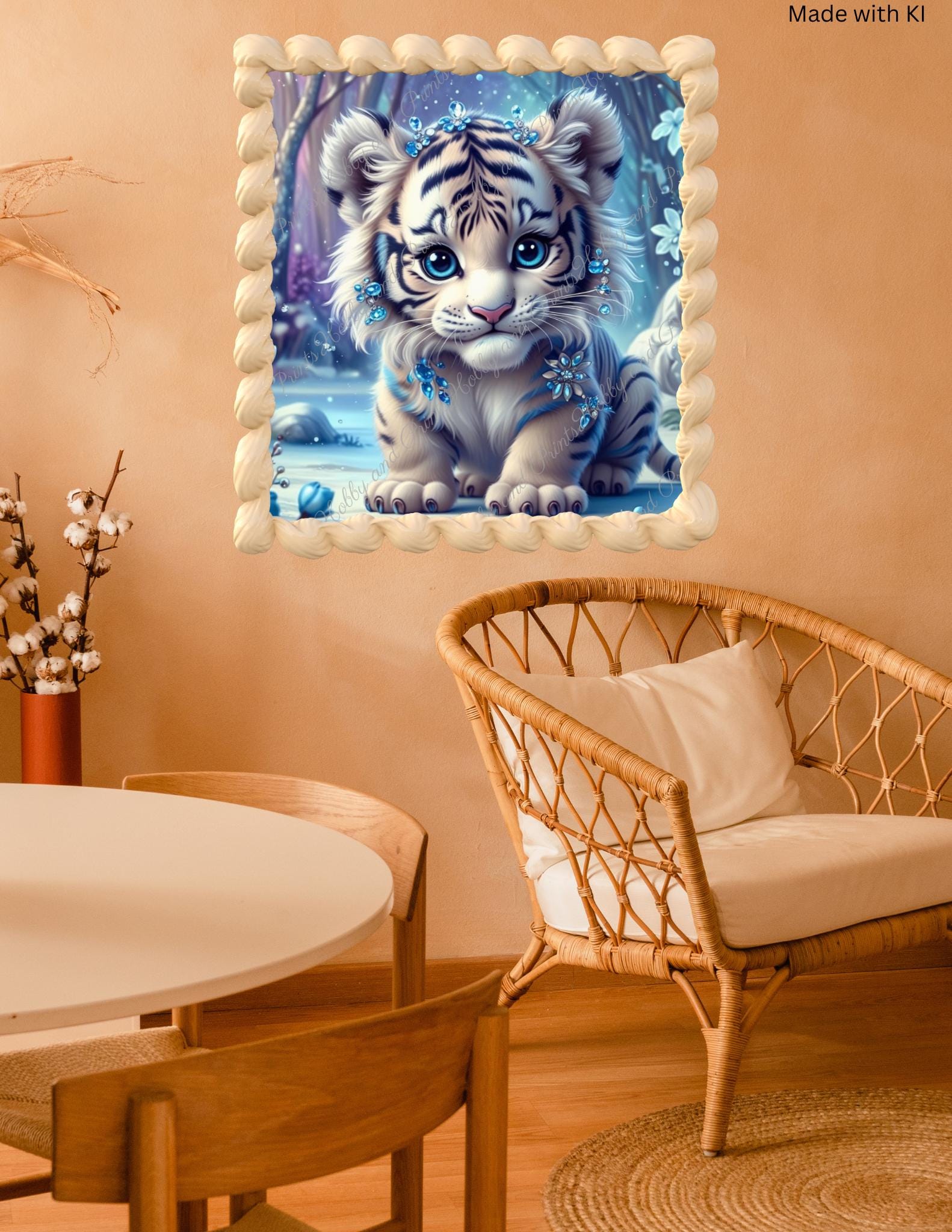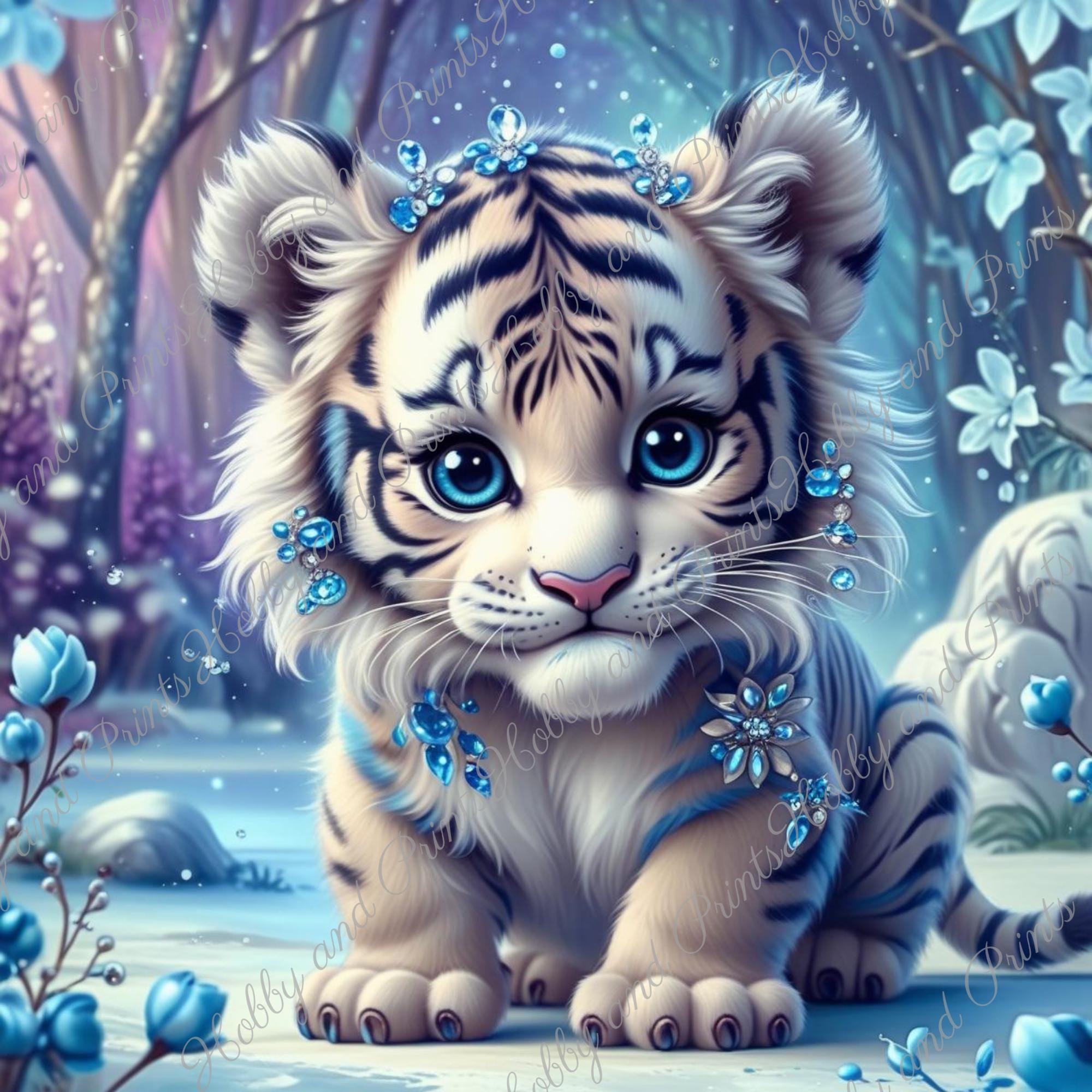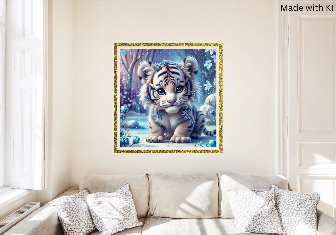 This enchanting diamond painting depicts a sweet, wintry Tiger with glittering jewelry patterns and crystal-blue details. Set amidst a shimmering snow-covered forest, the motif looks like something out of a fairy tale β ideal for fans of fantasy, Tiger , magic art, and children's room decor.