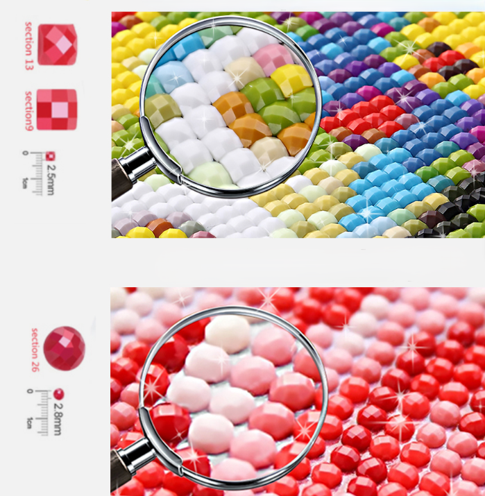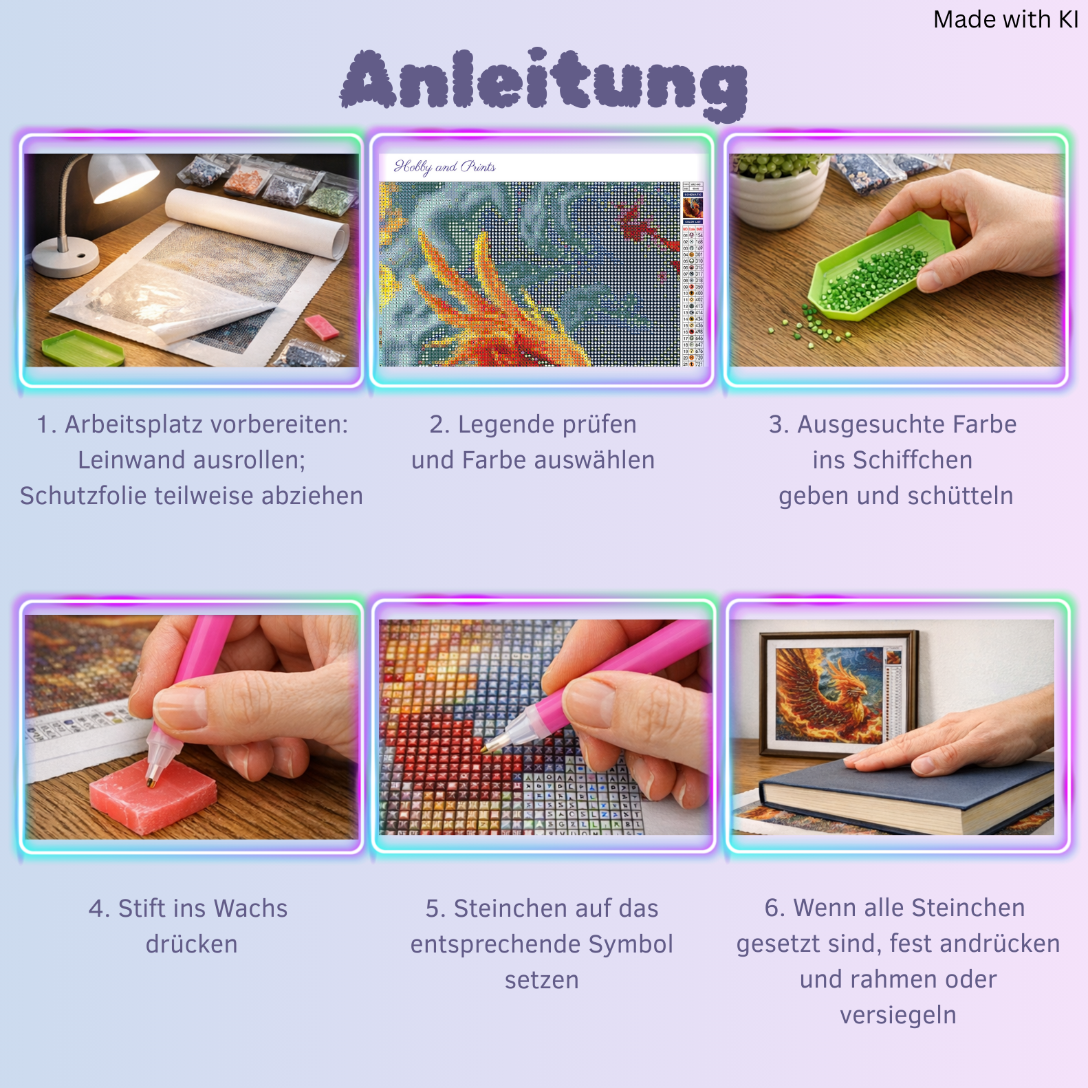 Beachten Sie, je größer Sie das Diamond Painting wählen, desto intensiver und detailreicher werden die Bilder.