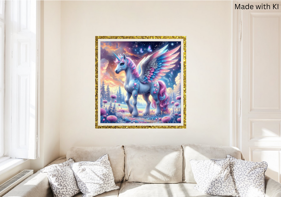 Tauche ein in die Welt der funkelnden Kreativität mit diesem hochwertigen Diamond Painting “Alihorn Freya im Fantasieland”. Das beeindruckende Motiv zeigt ein stolzes Einhorn vor einem traumhaften Nachthimmel – seine leuchtenden Farben machen dieses Bild zu einem echten Blickfang.